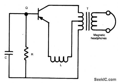 Position L near the transmitter output tank to hear the key-down tone。Then tape the coil In place. C=.047μF,R=8.2 K,Q=HEP 253(or equal),T=500:500 ohm center tapped transformer. L = 2 to 6 turns on 1/2'' coil from. (View)