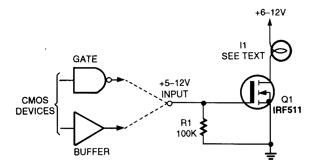 The circuit shows a way of using a MOSFET as a load driver. I1 can be a lamp, or any other load, that does not exceed the current rating of Q1.