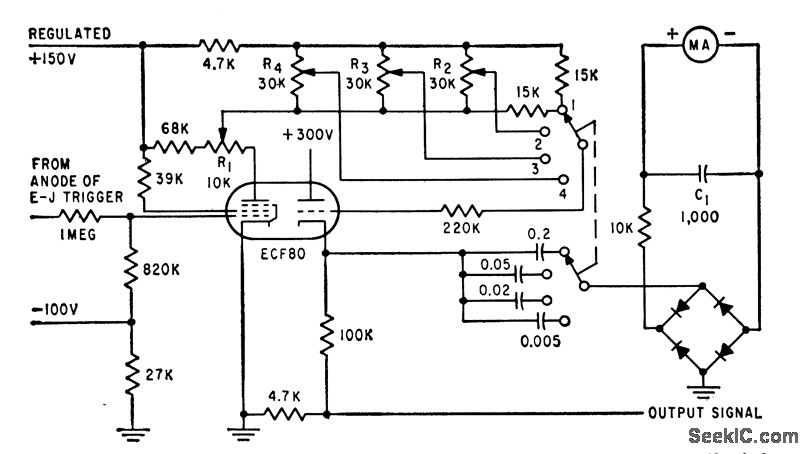 Flash role is metered by measuring mean charging current through capacitor supplied With constant-amplitude pulse voltage,-L. H. Barrett, New Circuit Improves Stroboscope Versatility, Electronics ,32:32,p 116-118.