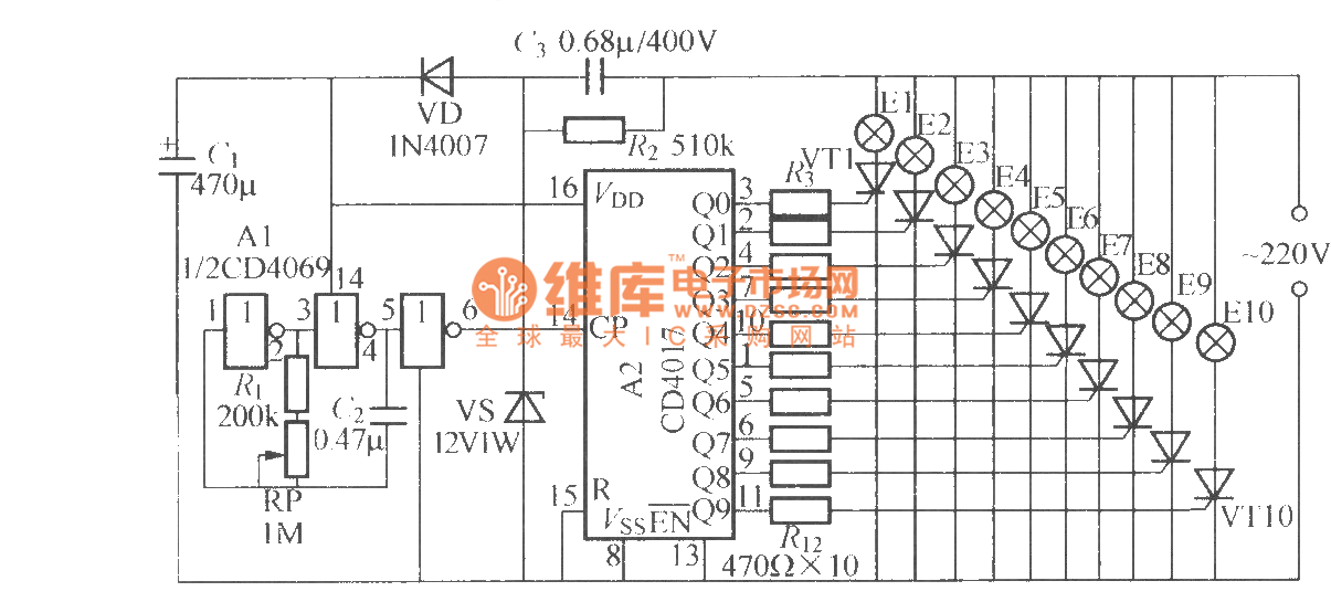 Published:2011/7/5 22:22:00 Author:zj | Keyword: Ten flash, lamp string circuit | From:SeekIC