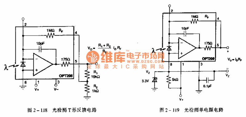 The light sensor OPT209 LED computing amplifier integrated circuit Functions: used in positioning and approaching sensors, fog detection, photo analysis and medical devices, etc.