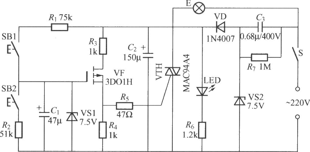 Published:2012/8/29 0:55:00 Author:Ecco | Keyword: Two-button, FET , dimming light | From:SeekIC
