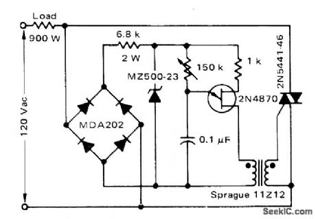 The 2N6101 transistor should be mounted on a small heatsink. The 300-KΩ resistor controls the off period and might need to be adjusted if transistor gains are high. The 100-KΩ resistor controls the on period. (View)