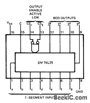 Single National DM76L25 read-only memory provides conversion from 7-segment outputs of MOS chip driving display to BCD inputs for data processing. Typical power dissipation is 75 mW. Access time is 70 ns when using 5-V supply. Article gives truth table for all standard and special characters of 7-segment display.-U. Priel, 7-Segment-to-BCD Converter: The Last Word?, EDN Magazine, Aug. 20, 1974, p 94-95. (View)