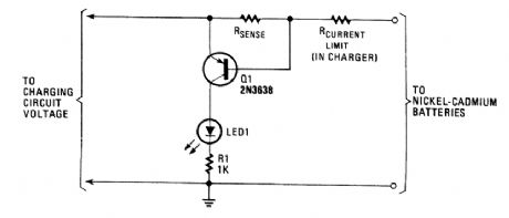 When a battery is charging, a voltage drop across RSENSE causes Q1 to conduct,and lights LED1. RSENSE should be chosen as follows: