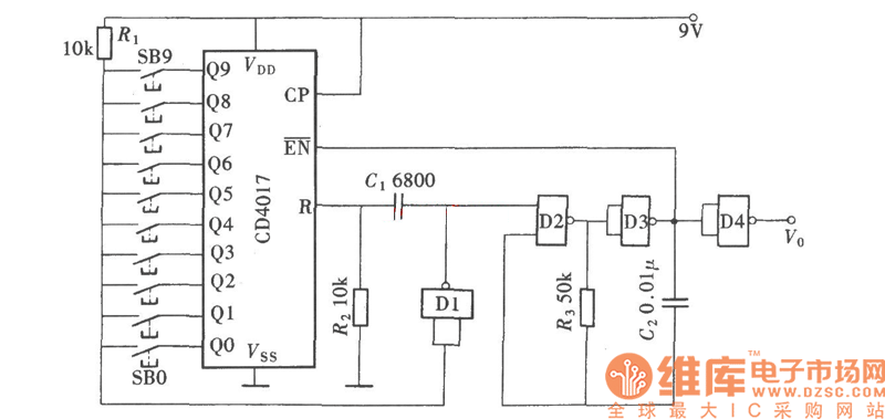 Published:2011/6/15 8:11:00 Author:Vicky | Keyword: Diagram of 1 to 9 Pulse Selection Circuit, | From:SeekIC