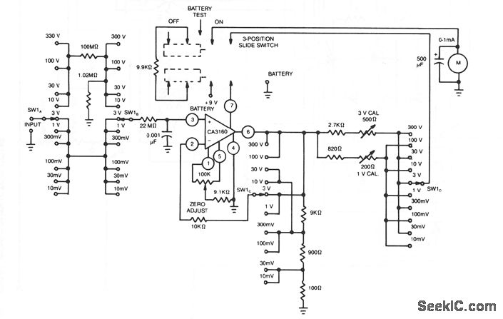 http://www.seekic.com/circuit_diagram/Measuring_and_Test_Circuit/HIGH_INPUT_RESISTANCE_DC_VOLTMETER.html