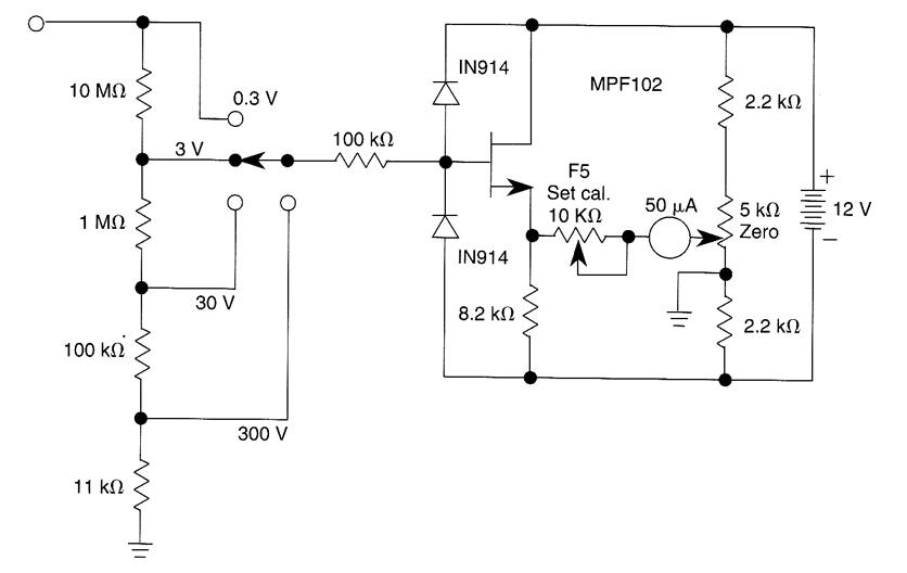 http://www.seekic.com/circuit_diagram/Measuring_and_Test_Circuit/JFET_VOLTMETER.html