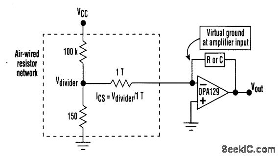 Using an air-wired resistor-divider network, designers can make a precision femtoampere source that can inject a known error current into the amplifier to check the circuit's accuracy.