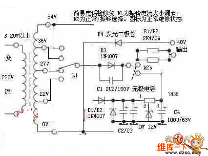 The Simple telephone repair instrument circuit is as shown in the figure: