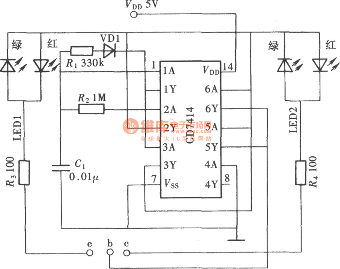 The transistor is one of the most commonly used devices in electronic circuits, and it is often to be tested, sometimes it is very troublesome to use a multimeter to test. The instrument is simple to manufacture, and the test results are very good, and it can fully meet the general requirements. The circuit schematic is shown as figure.