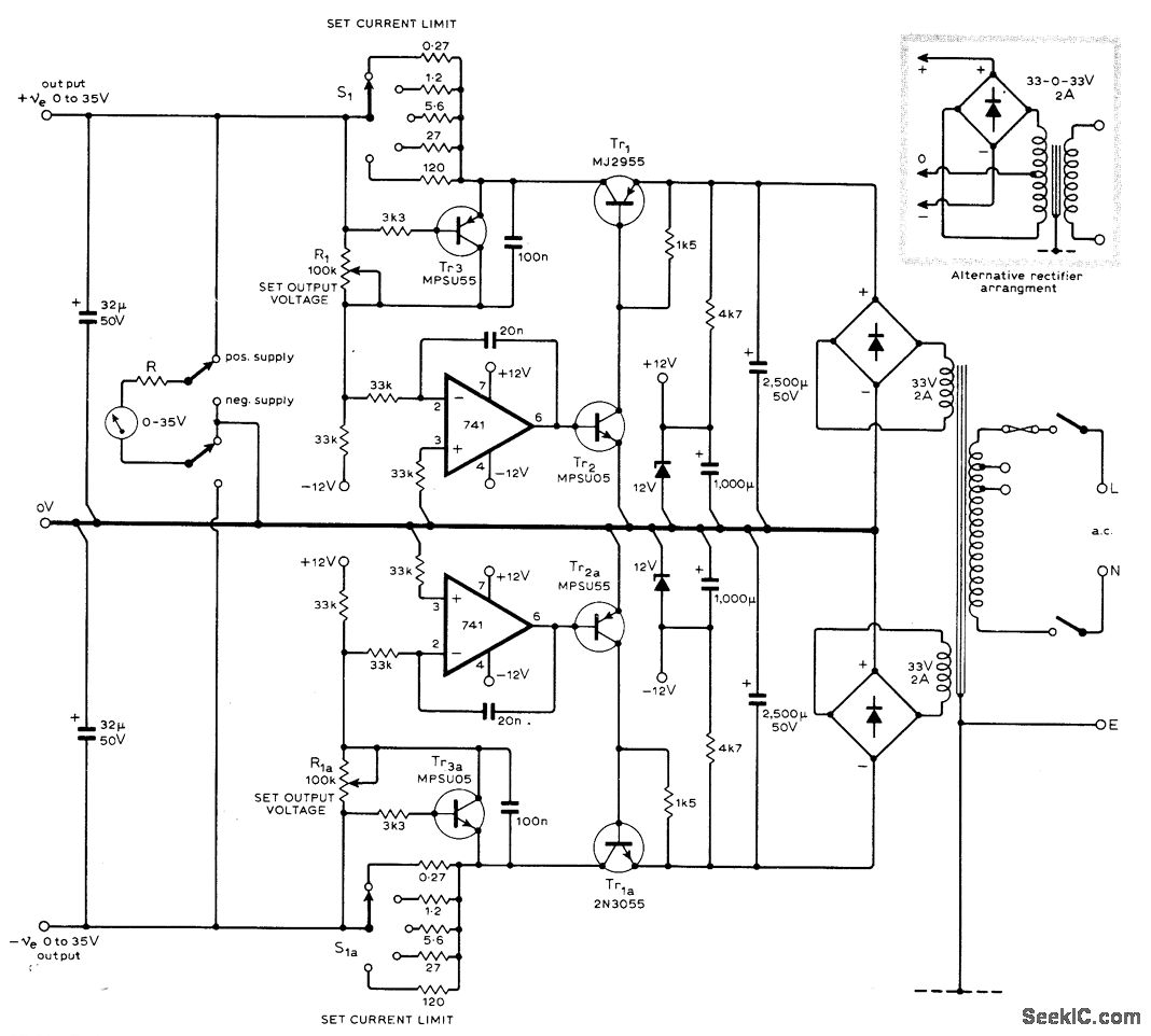 http://www.seekic.com/circuit_diagram/Power_Supply_Circuit/0_to_±35_V.html