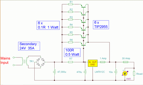 http://www.seekic.com/circuit_diagram/Power_Supply_Circuit/12_Volt_30_Amp_PSU.html