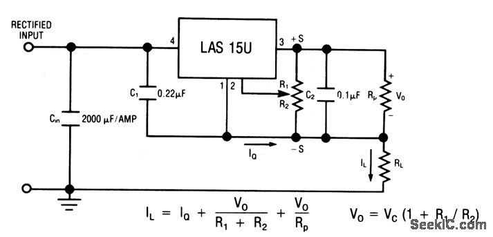 This circuit uses the LAS15AU voltage-regulator IC (Fig. 7-33) as an adjustable-current regulator. Characteristics are shown in Fig. 7-32B, 7-32C, and 7-32D.
