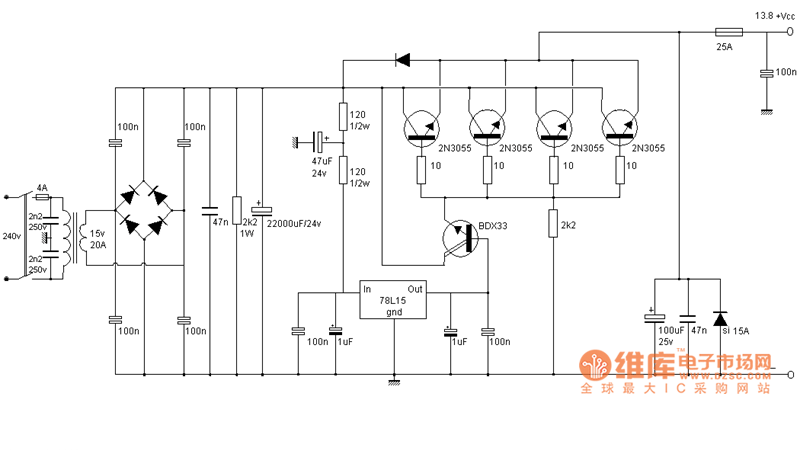 Published:2011/4/29 3:37:00 Author:Ecco | Keyword: 20A, 13.8V, power supply, shematic diagram | From:SeekIC