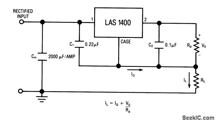 This circuit uses the LAS1400 series voltage regulator (Fig. 7-28A) as a fixed-current regulator. Characteristics are shown in Fig. 7-28B, 7-28C, and 7-28D.