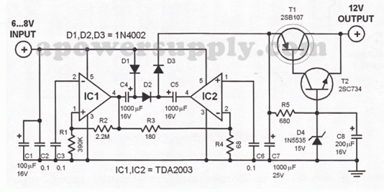 Source: http://apowersupply.com/6v-to-12v-converter-tda2003-144.html
