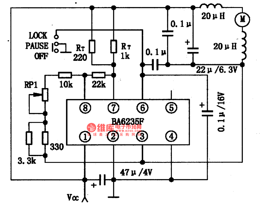 BA6235F a stable integrated circuit of D.C motors produced by Toyo Corp.,Japan, which is always used in Walk-man and radios.1.the typical application circuit of BA6235FThe application circuit of BA6235F chips is as shown in Figure 1.