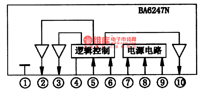 2. Pin functionsBA6247N is in 10-lead single in-line package, whose pin functions are listed in Table 1.