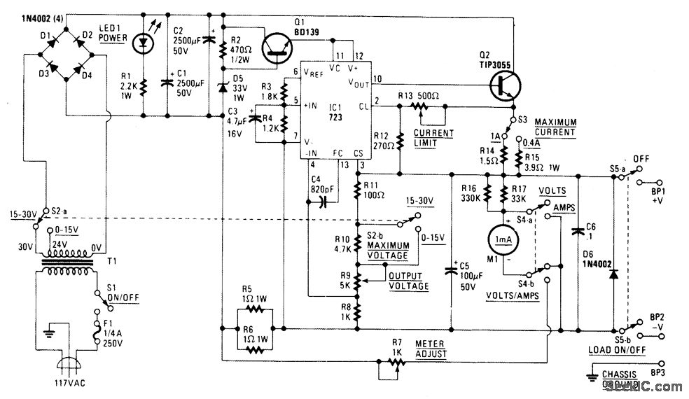 http://www.seekic.com/circuit_diagram/Power_Supply_Circuit/BENCH_TOP_POWER_SUPPLY.html