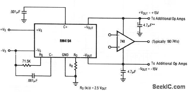 This circuit provides blanced output voltage that can be varied between±50 and ±42 mV by selection of Ro,with load currents of 200mV. This circuit is particularly useful for op-amp (chapter 10) applications,
