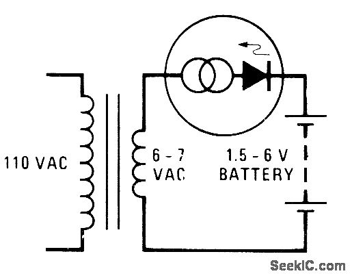 Constant-current characteristic of National NSL4944 LED is used to advantage in simple half-wave charger for batteries up to 6 V.- Linear Applications, Vol.2, National Semiconductor, Santa Clara, CA, 1976,AN-153,p 2.