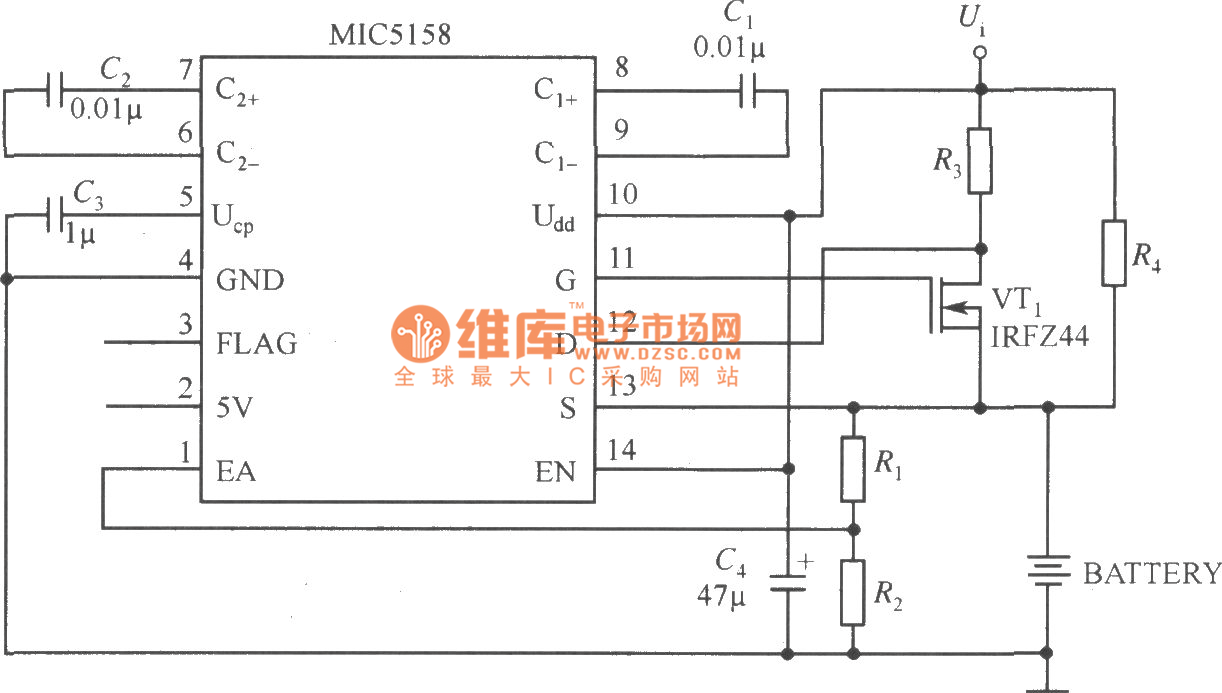 http://www.seekic.com/circuit_diagram/Power_Supply_Circuit/Battery_Charger/MIC5158_battery_charger_circuit.html