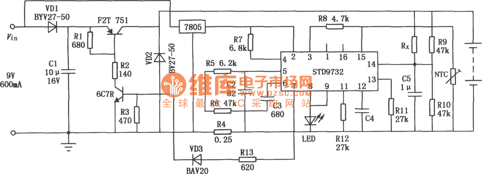 http://www.seekic.com/circuit_diagram/Power_Supply_Circuit/Battery_Charger/STD9732_simple_charger_circuit.html