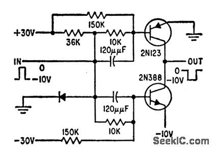 Transistor switch, having drop of less than 50 mv when delivering 50 ma, is used in display that provides fast alphanumeric readout on crl by forming characters from series of overlapping dots.-S. C. Chao, Character Displays Using Analog Techniques, Electronics, 32:43, p 116-118.