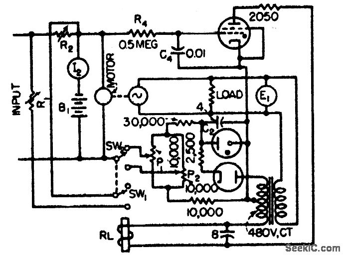Eliminates need for separate reference battery. Control fires thyratron to pull in or out and initiate charging cycle when battery voltage drops.-V. Zeluff and J. Markus, Electronics Manual for Radio Engineers, McGraw-Hill, N.Y., 1949, p 545.