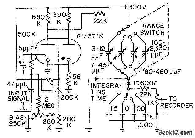 Fourelement cold-cathode tube operates directly from output pulse of 6292 photomultiplier receiving light output of Zns screen of alpha particle detector. Maximum counting rate is 100 counts per second.-M. H. Goosey, De-signing Cold-Cathode Tube Circuits, Electron-ics, 31:3, p 101-108.