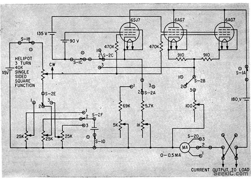 Used to measure resistivity of semiconductors rapidly and accurately. Switch gives choice of 0.5, 5, and 50 ma. Values are read from dial settings rather than meters, to increase accuracy-P. J. Olshefski, Constant. Current Generator Measures Semiconductor Resistance, Electronics, 34:47, p63.