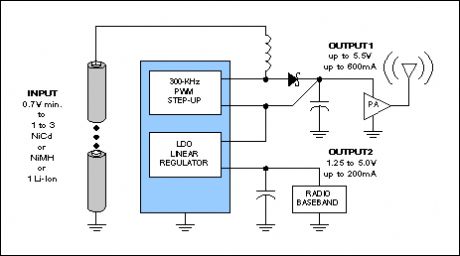 Combining a DC-DC boost converter with an LDO has two advantages: It implements a low-noise boost function (at a slight penalty in efficiency versus the noisy booster without an LDO), and it performs the buck/boost function with surprisingly high efficiency. A typical buck/boost application converts the output of one Li-ion cell to 3.3V. Efficiency is very high, because the battery spends most of its life near 3.6V, allowing the booster to idle and providing the LDO with a near-ideal input voltage. This system also delivers higher efficiency with smaller external components than the traditional SEPIC converter. Because of the favorable characteristics of this arrangement, several single-chip implementations are available for the DC-DC boost converter plus LDO architecture.