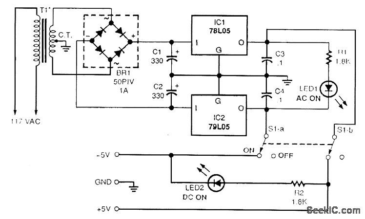 http://www.seekic.com/circuit_diagram/Power_Supply_Circuit/DUAL_5_V_SUPPLY.html