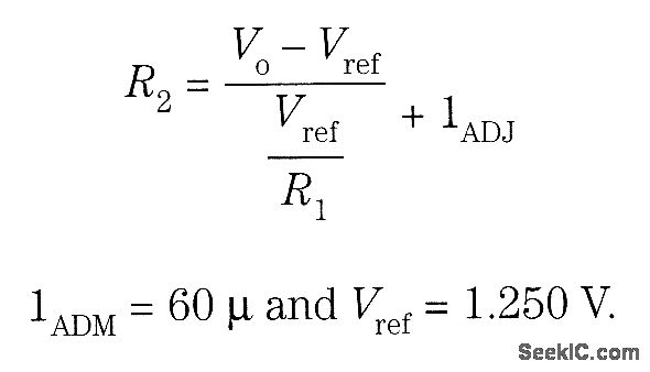 The adjustable version of the LT1585 makes it relatively easy to accommodate multiple microprocessor power-supply voltage specifications. To retain the tight tolerance of the LT1585 internal reference, a 0.5% resistor adjustment is recommended. R1 is sized to carry approximately 10 mA idling current (≤124 Ω), angl R2 is calculated from: