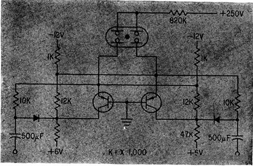 On-off indicator for transistorized flip-flop operates on voltage differential of 6V.-A. Erikson, French Components Gaiting Smaller, Electronics, 34:11, p 24-25.
