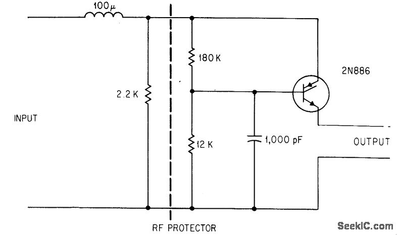 Capacitor between gate and cathode provides shunt path at higher frequencies to prevent firing of silicon controlled switch by r-f interference. Values in circuit will give protection from 32-V signals between 100 kc and 30 Mc. –R. J. Sanford, Can RFI Control Prevent Weapons Failures?, Electronics, 36:45, p 43-45.