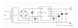 The stabilizer is made on the integrated circuit KR142EN6. IC is a bipolar voltage regulator with an output voltage of + / -15 V. Maximum load current is 200 mA. Enough to supply a pre-amplifier or the early stages of the power amplifier.Diode bridge – any of a series of KTS407, KTS405, KTS402.Transformer with two secondary windings, the voltage on each – 16 Volt.