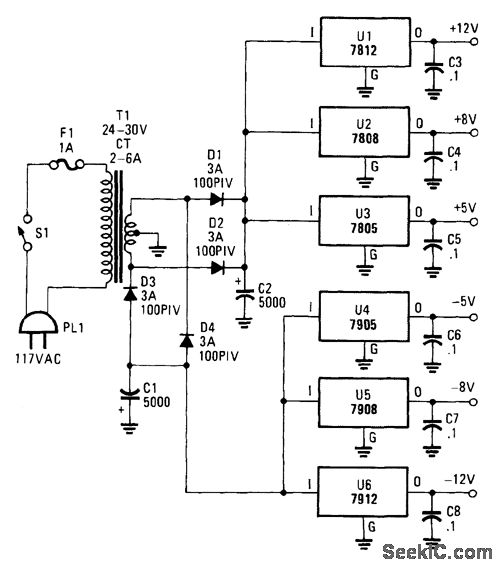 http://www.seekic.com/circuit_diagram/Power_Supply_Circuit/MULTIVOLTAGE_POWER_SUPPLY.html