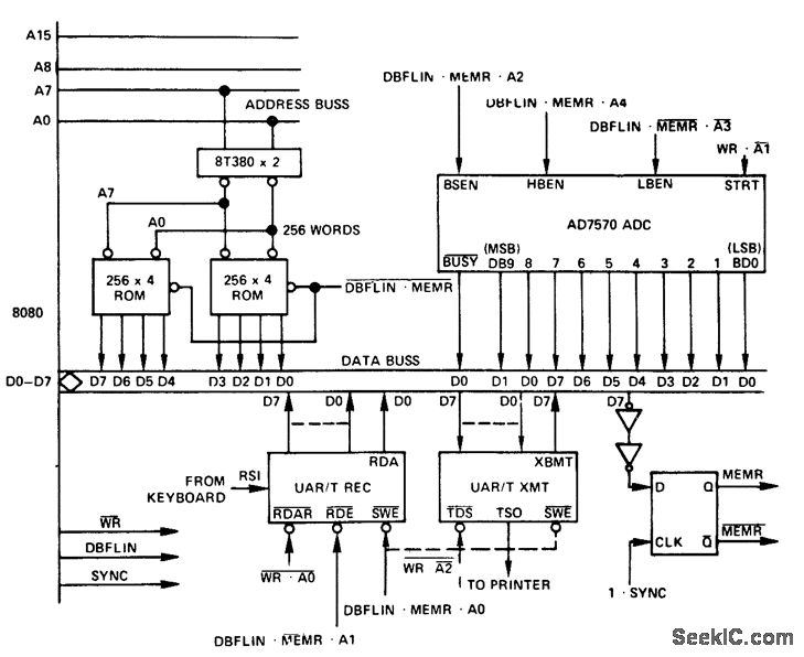 Microprocessor-controlled TTY-to-A/D convener interface. The AD7570 is a 10-bit CMOS A/D convener (courtesy Analog Devices, Inc.).
