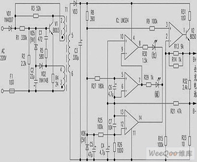 The Nokia 8210 mobile phone travel charger circuit is produced in ShangHai, the shell is labeled with: Input AC220V/50Hz(<=30mA), output 4.2V(<=200mA). In the use of charging, for the lithium battery which needs to be charged, when the voltage of the lithium battery is charged to 3.98V, the red light of the charger circuit turns off, the green light turns on. The charging time is about four hours. The author analyzes the charger and draws the circuit for reader's use and reference, the op-amp IC in this circuit is used as the comparator.