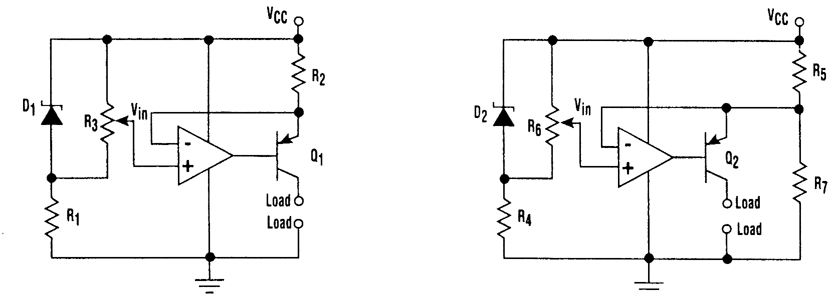 By carefully choosing components,you can create a cost effective circuit for a current Sourcewith an output that's accurate to 1%(Fig A). IOUT (the current flowing from the collector of Q1) is VCC-VIN(the voltage at the wiper of R3)divided by the value of R2.In some instances,it's important to be able to turn off the current source (within the limits of ICEO for Q1). Unfortunately, in about half of these cases,the offset voltage (Vos) of the op amp willturn the current Source on even when VCC=VIN That's because the offset voltage(when the norunverting input needs to be at a higher potential than the inverting input to get an output of 0V from the op amp) is impressed across R2 This offset voltage forces Q1 to turn on enough to yield a collector current of Vos divided by R2. Figure B offers a fix for this predicament The addition of R7 presents the emitter of Q2 with a Thevenin equivalent voltage and resistance represented by∶