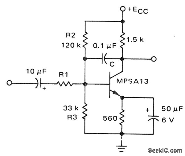 Operational integrator. Two cascaded 2N3904s can replace the MPSA 13 (courtesy Motorola Semiconductor Products Inc.).