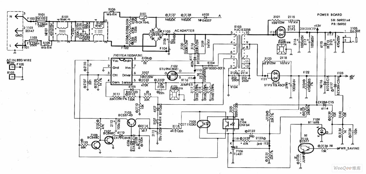 PHILIPS 170 B4 LCD monitor switching power supply takes 7101 (TEA1533) as its core component. The circuit is as shown in the figure.