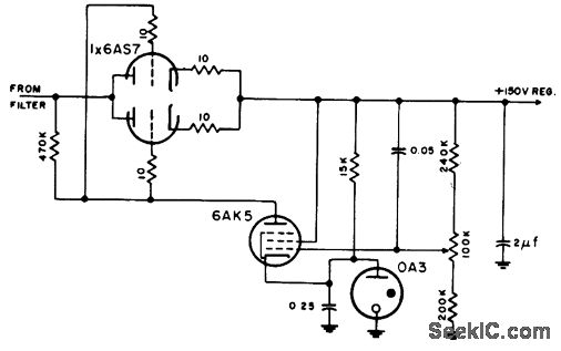 Has self-contained 150-v positive reference potential for pentode regulator, but gives only marginal operation.-NBS, Handbook Preferred Circuits Navy Aeronautical Electronic Equipment, Vol. 1, Electron Tube Circuits, 1963, p N2-4.
