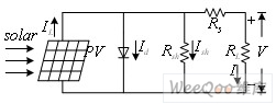 Photovoltaic cell is made according to the photovoltaic effects of semiconductor materials.The so-called photovoltaic effects refers to the phenomenon that when semiconductor materials absorb luminous energy, it will produce hole pairs because of the photons, and bring about electromotive force after being seperated.I-V properties of photovoltaic batteryvaries with the intensity of sunshine S (W / ㎡) and the battery`s temperature t (℃) , namely I = f (V, S, t). According to electronics theory, when the load is pure resistance, the actual equivalent circuit of photovoltaic battery is as shown in the graph.