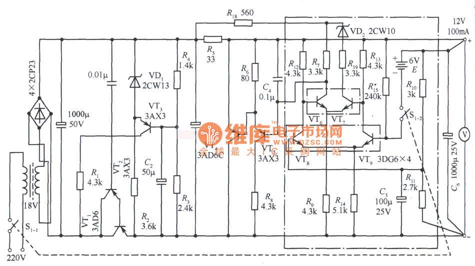 http://www.seekic.com/circuit_diagram/Power_Supply_Circuit/Power-Supply_Circuits-Fixed/12V、100mA_Precision_fixed_power_supply_circuit_diagram.html