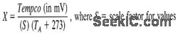 This circuit shows how a voltage reference can be combined with an op amp to create an electronic thermometer (with±5% accuracy). To calibrate, measure the voltage at pin 3 of REF-02, and the ambient room temperature (TA in℃). Then find X as follows: