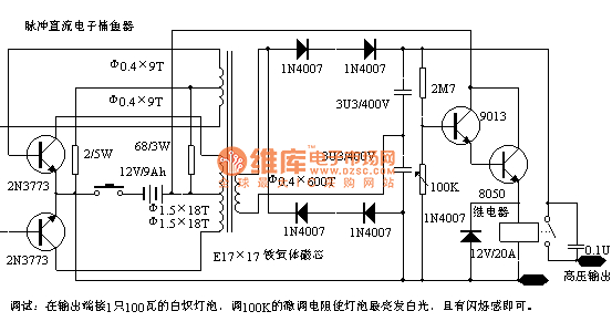 http://www.seekic.com/circuit_diagram/Power_Supply_Circuit/Pulsed_dc_electronic_fishing_device.html