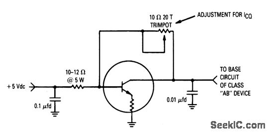 The BT500 shown in this circuit is designed for use in class-AB amplifiers to provide a thermally tracked bias source. The electrical characteristics are given in Fig. 2-44B.